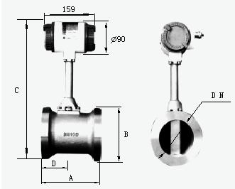 為了確保儀表正常、準確運行,渦街流量計安裝點的上下游須有一定的直管道,以調整流場,如圖所示。