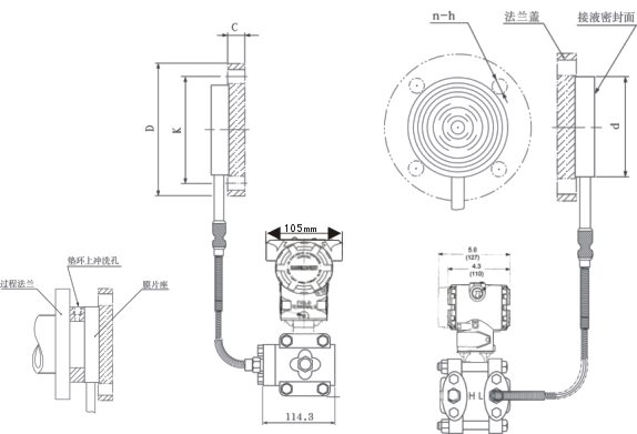 AK-3051GP單法蘭液位變送器是一種通過(guò)安裝在管道或容器上的遠(yuǎn)傳裝置來(lái)感受被測(cè)壓力,該壓力經(jīng)毛細(xì)管內(nèi)的灌充硅油(或其它的液體)傳遞至變送器的主體,然后由變送器主體內(nèi)的δ室和放大線路板,將壓力或差壓轉(zhuǎn)換4~20mA.DC信號(hào)輸出(參見(jiàn)結(jié)構(gòu)原理圖)。 |